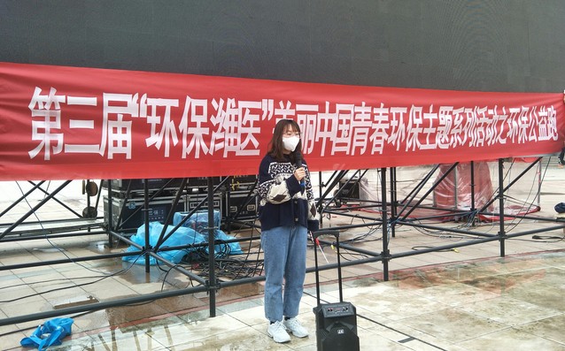 活动当天,参赛队伍统一在学校西门口集合签到,参赛队员手持小红旗合唱《歌唱祖国》。合唱结束后,环保公益跑正式开始。本次公益跑全程约4公里,路线是围绕学校建筑连线成数字“100”与“70”,意在为中国共产党成立100周年与潍医建校70周年献礼,表达“我与潍医共成长,献礼建党100年”的美好祝愿。