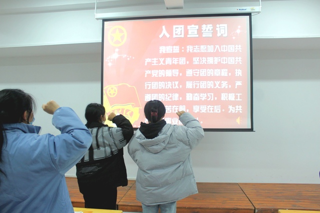 本次活动分团务知识学习、团史知识竞答、党情学习分享三个环节。首先,由高年级优秀共青团员代表为大家讲解第一部分:走进共青团。本环节主要让同学们了解“什么是共青团”、“共青团的性质和使命”等团务知识;随后全体起立,齐唱团歌,并面向团旗,重温入团誓词。在团史知识竞答环节,同学们积极地回答了“共青团的成立时间”、“团籍的意义”、“中国青年志愿者服务日”等问题。活动最后,劳动与社会保障专业和市场营销专业2021级团支部书记孙佳辰和郑佳寒上台分享了“学习十九届六中全会精神”的心得体会,并与大家进行了讨论交流。