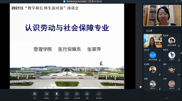 为了让劳动与社会保障专业2021级同学进一步了解所学专业,激发同学们对本专业的学习热情,加强师生之间的交流,“大学生成长与发展计划”为其安排了“认识劳动与社会保障专业”专题讲座。讲座由张翠萍副教授主讲,医疗保障系主任胡善菊主持,劳动与社会保障专业2021级全体同学、部分专业教师参加。
