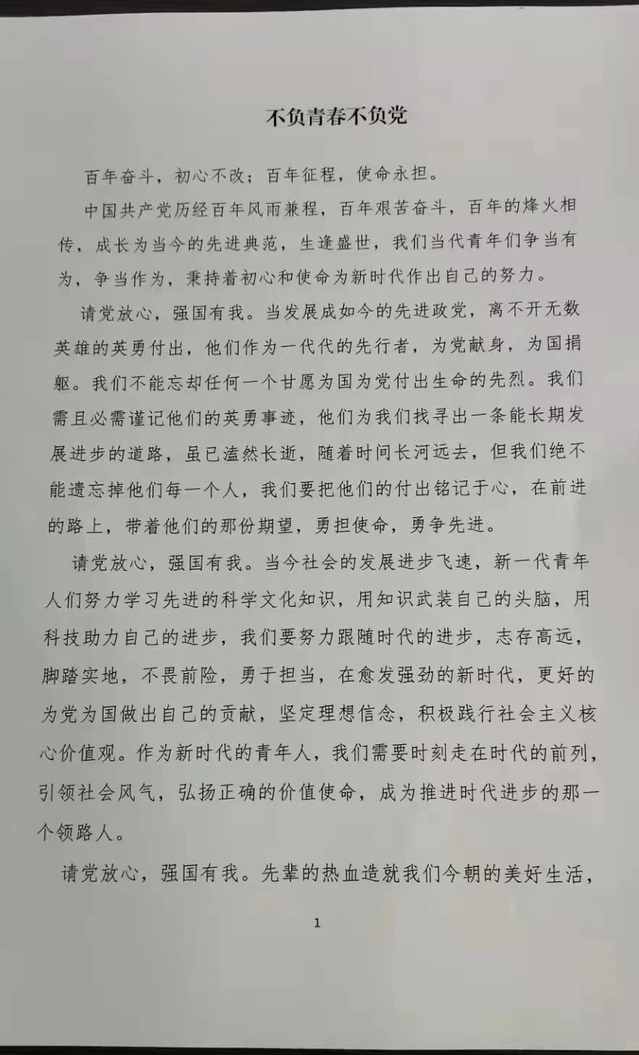 “弘扬爱国情,抒发报国志”——支部开展“请党放心,强国有我”主题征文活动。党员们结合习近平总书记对青年学生的寄语以及网上参观雨花台烈士纪念馆的收获,讲体会、谈感受,将爱国之情、强国之志流露于字里行间。学生党员荣晓琦写道:“先辈的热血造就我们今朝的美好生活,我辈青年的奋斗将传承延续先辈精神。”学生党员李方正更是许下自己的誓言:“新时代的我们要谨记前辈教诲,以青春之我谱写我辈青春之歌。”
