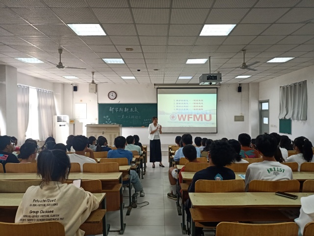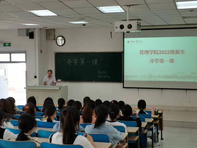 董惠平通过身边丰富详实的工作案例,从“保护好自己,锻炼体能;学会不抱怨,懂得感恩;做好小规划,提升自我;树立远大理想,确立目标”四个方面,深入浅出地为新生讲授了一堂别具一格的“开学第一课”。内容发人思考,形式独特新颖,大家受益匪浅。她希望全体新生不负韶华,砥砺前行,让自己的大学生活充实而又难忘。孙勇从疫情防控、请销假制度、网络安全、自我定位等方面进行温馨提示,让新生们进入大学要做好个人安全防护,遵规守纪,爱校荣校,尽早进行学业规划。辅导员从学生日常行为管理、建设良好学风班风、心理健康教育、提升大学生素质等方面进行了重点强调。