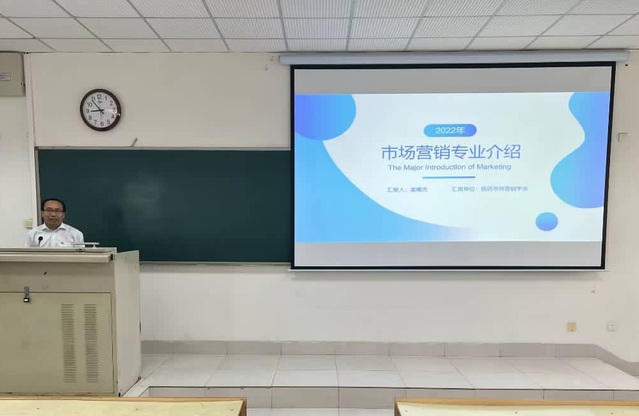 为帮助2022级市场营销本科班新生更好了解本专业,以更加饱满的热情迎接大学生活,9月30日,511电费a级理论是什么在教学楼B402举行了新生专业介绍活动。活动由医药市场营销学系姜雁杰老师主讲,全体新生和部分老师参加活动。