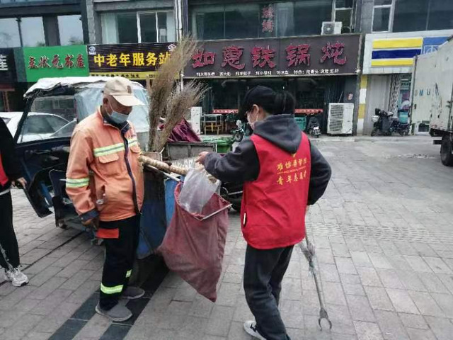 活动开始,在庄家社区党群服务中心,工作人员就社区的基本情况作了介绍,并对实践活动做出要求和分工。随后,同学们跟随工作人员来到景苑沿街商户门前,根据创建卫生城市的标准,开展了整齐摆放共享单车、打扫商户门前烟头垃圾等卫生服务活动。同时,同学们向居民和商户发放了“开展爱国卫生运动,建设宜居美好家园”宣传页,进一步宣传爱国卫生运动的重要性。