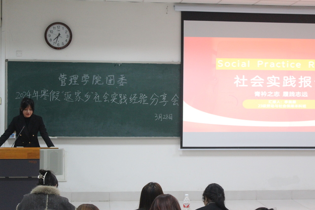 此次寒假“返家乡”社会实践成果分享会的成功举办,不仅展示了管理学子们的实践成果和青春风采,也进一步激发了大家参加社会的热情。相信在未来的日子里,他们将以更加饱满的热情和更加扎实的行动,为社会发展贡献青春力量。