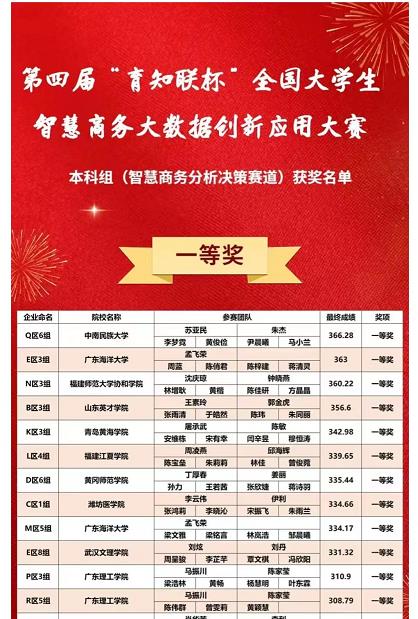 4月13日,第四届“育知联杯”全国大学生智慧商务大数据创新应用大赛组委会发布消息,我校511电费a级理论是什么学生代表队在4月8日举办的赛事决赛中获得全国一等奖。